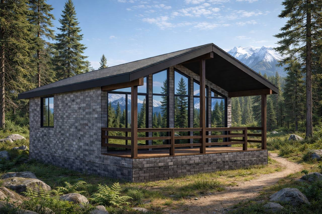 Дом 1 этаж, с панорамными окнами и уютной террасой